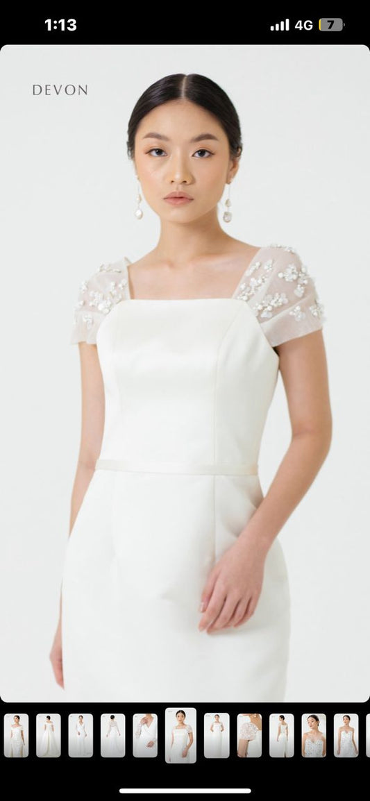 Bridal | Mier Atelier - White Column Dress with Beads and Matching Veil
