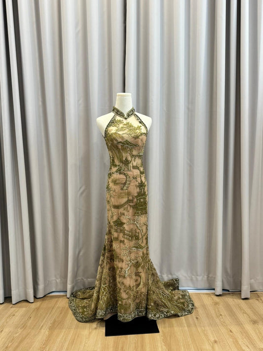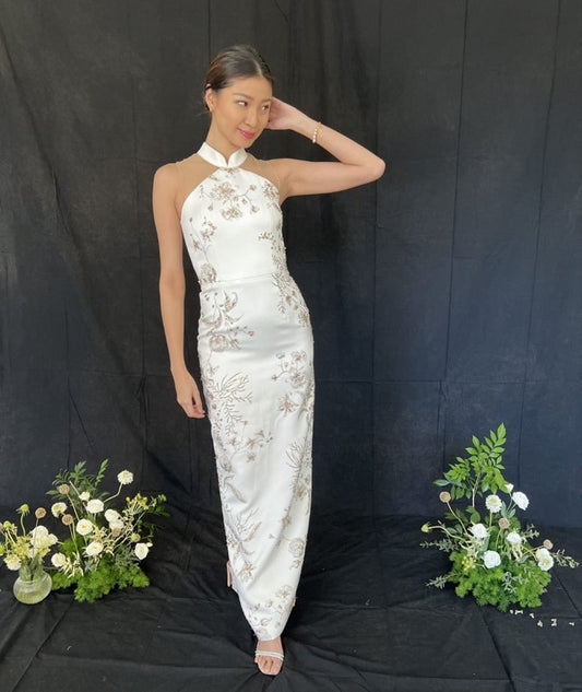 Cheongsam | Stella Lunardy - Beige Cheongsam with Halter Neck