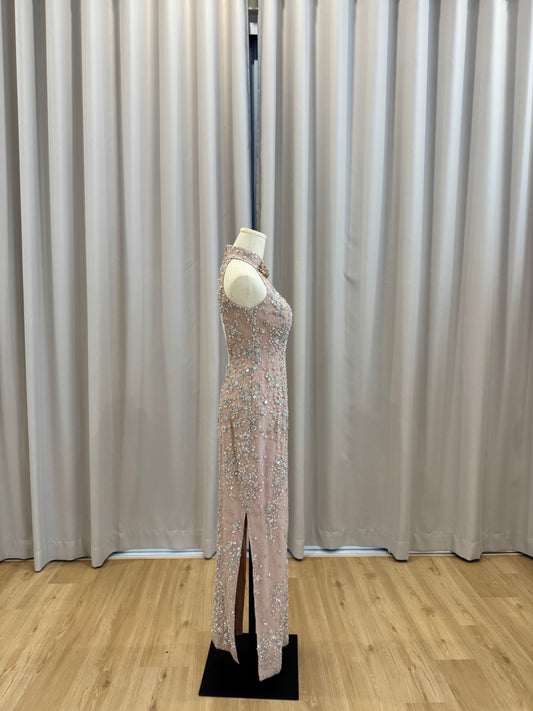 Cheongsam | Evening | Mier Atelier - Sleeveless Chiffon Pink Beaded