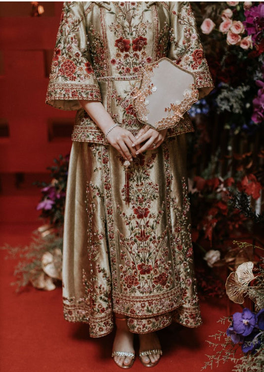 Cheongsam | Stella Lunardy - Sheer Beige and Green Beaded