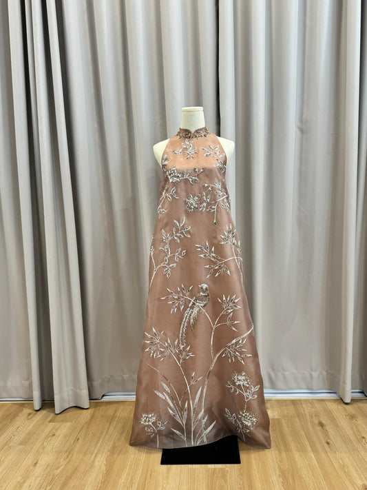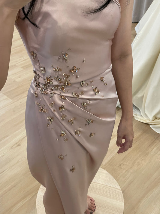 Cheongsam | Evening | Mier Atelier - Sleeveless Chiffon Pink Beaded