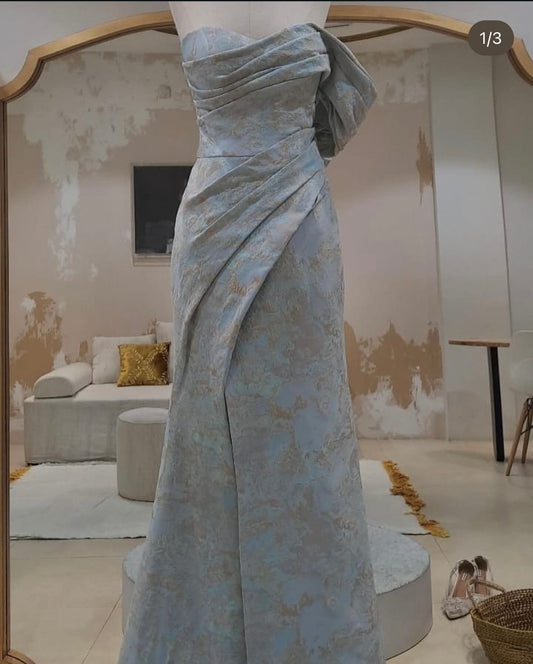 Evening | Studio Vian - Draped Blue Gown with bra padding