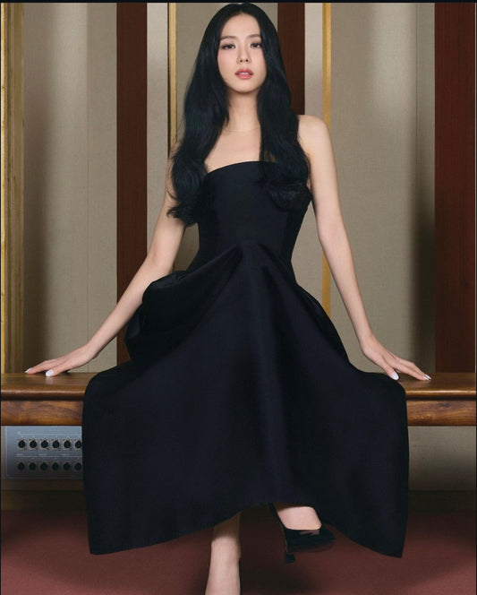 Evening | Self-portrait - Black Taffeta Midi Dress