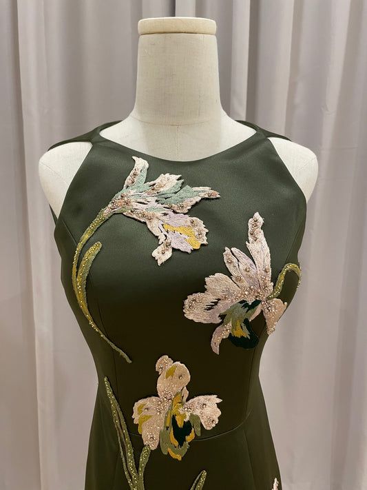 Evening | Mier Atelier - Green Embroidered Flowers