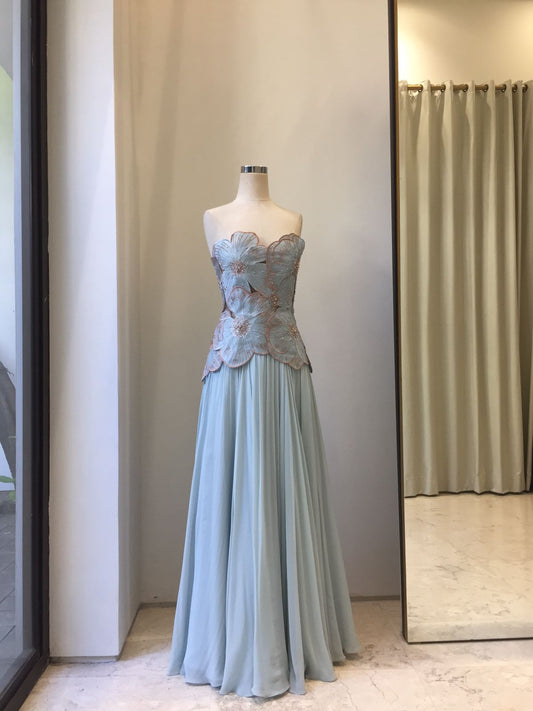 Evening | Mier Atelier - Blue Drop Waist Floral Dress