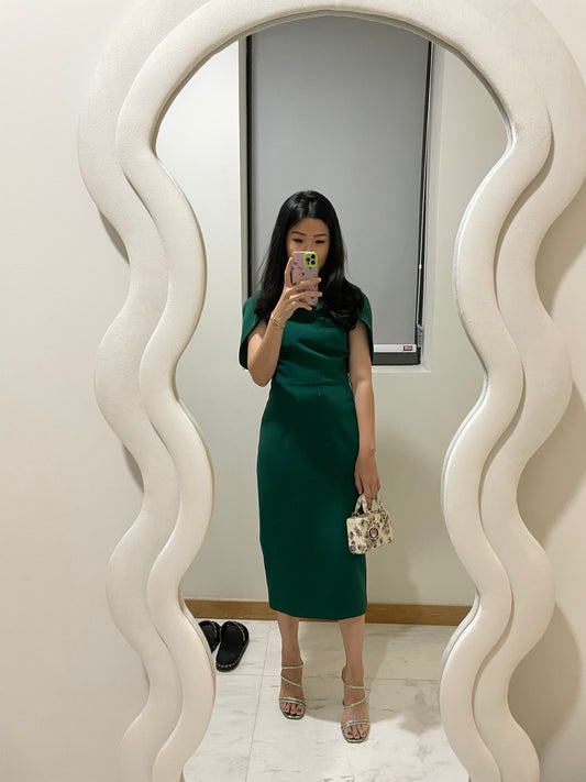 Evening | Safiyaa - Midi Dress in Alpine Green (Removable collar)